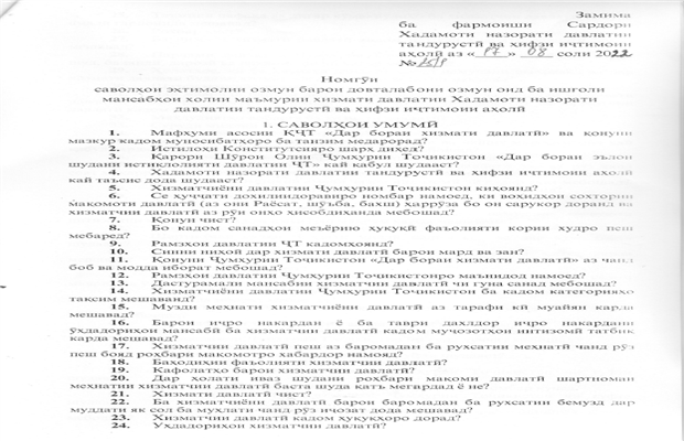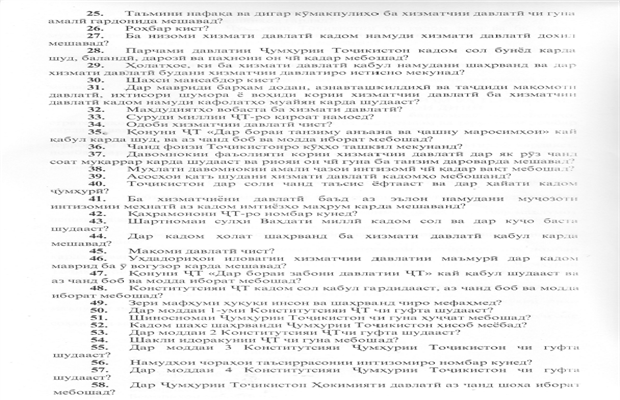 Номгӯи саволҳои эҳтимолии озмун барои довталабони озмун оид ба ишғоли мансабҳои холии маъмурии хизмати давлатии Хадамоти назорати давлатии тандурустӣ ва ҳифзи иҷтимоии аҳолӣ 23.09.2025 👉 «Номгӯи саволҳои эҳтимолии озмунро аз пайванди зерин боргирӣ кунед.»